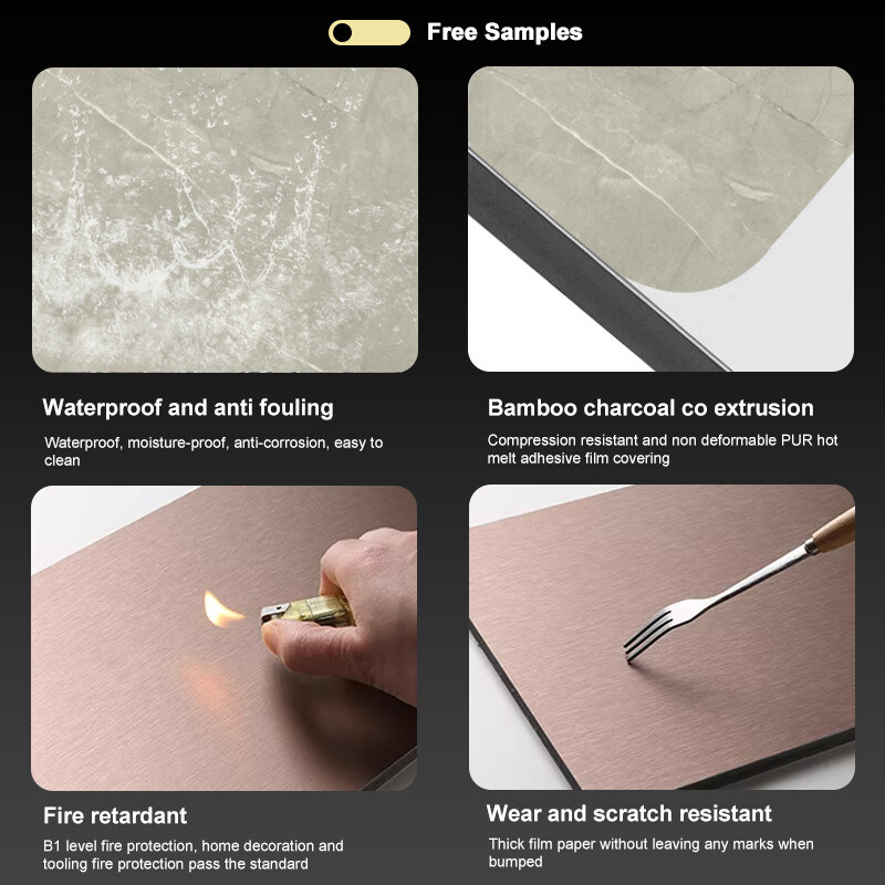 سهولة التركيب، حماية البيئة، مرنة، قابلة للانحناء، عالية الكثافة، قابلة للطي. مقاومة للحريق + مقاومة للماء + مقاومة للرطوبة + مضادة للخدش + امتصاص الصوت، مقاومة للعفن. خفيفة الوزن. ألوان متنوعة، إلخ.