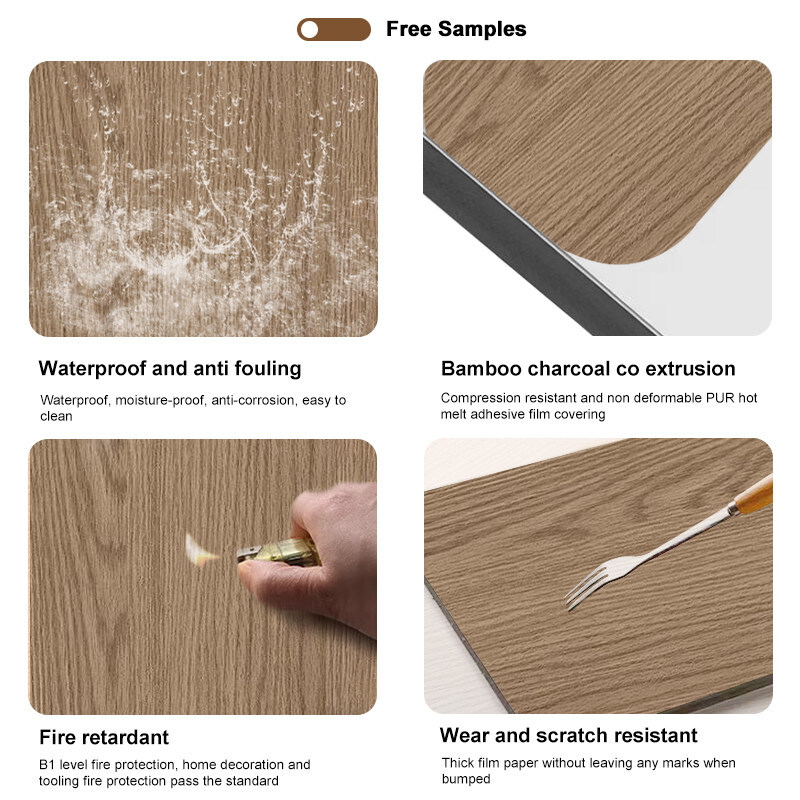 تم تصنيع قشرة الخشب من الخيزران بواسطة التكنولوجيا المتقدمة، إنها مزيج فريد من ألياف الخشب من الخيزران وبلاستيك مستقر جديد قابل لإعادة التدوير، إنها صديقة للبيئة بنسبة 100٪، مقاومة للماء / مقاومة للحريق،مرنة وغير قابلة للتشوه، هو الخيار الأفضل للزخرفة الداخلية. القشرة الخشبية القشرة الخشبية مصنوعة من الخشب الطبيعي أو عملية تخطيط الخشب ، مع الملمس الطبيعي ، والشعور القوي بالخشب الصلب والشعور ثلاثي الأبعاد ،مستوى واضح، دافئة في فصل الشتاء وباردة في فصل الصيف ، مناسبة لمتطلبات الحياة البشرية والاحتياجات الزخرفية ، يمكن أن يضيف استخدام ألواح الحائط من التشطيب الخشبي شعورًا بالطبيعة والراحة إلى المساحة الداخلية ،جعل الناس يشعرون بالراحة والطبيعةلوحات الحائط الخشبية هي نوع من لوحات الزخرفة الخشبية ، يمكن أن تكون مقاومة للارتداء ومقاومة للخدوش ، ويمكن أن تكون الحواف سهلة الانحناء ، ويمكن تثبيتها مباشرة على الحائط الخام ،التصميم بسيط ومريح، والصيانة سهلة جدا، وتوفير الكثير من وقت التثبيت. في اختبار المنظمات الوطنية اختبار،لقد وصلت اللوحة إلى مستوى حماية البيئة E0 ومستوى حماية الحريق B.